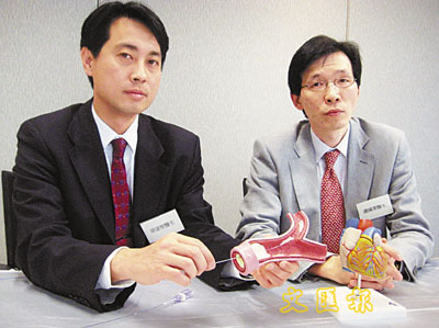■梁達智(左)表示,糖尿病患者的血管較幼細狹長,手術後血管再塞機會也較高。本報記者鄭佩琪 攝