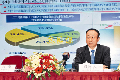 梁岩峰解釋說,去年公司塗料業務稅前利潤僅增5%,其原因包括原材料價格上升,公司部分塗料銷售以美元結算,人民幣升值對其匯兌造成一些損失,再加上珠海工廠剛投入使用,需要反映初期的投資成本,使其毛利率下降。
