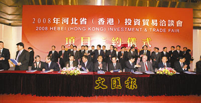 ■2008年河北省(香港)投資貿易洽談會舉行簽約儀式。 本報記者張偉民 攝