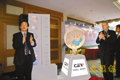 ■河北省省長郭庚茂(左)與WWF香港分會CEO艾瑞克為「中國電谷 低碳保定」啟動儀式揭幕。
