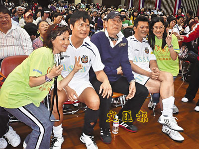 ■香港明星足球隊多位隊員,昨日也出席奧迪「以愛傳聲」繽紛嘉年華。