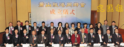 【本報訊】蕭山旅港同鄉會日前假萬豪酒店舉行隆重成立典禮,中聯辦經濟部副部長王暉應邀出席。杭州市委常委、蕭山區委書記洪航勇親率代表團蒞港祝賀,並為該會榮譽會長魏天欽、胡鴻烈,名譽會長、會長、副會長暨全體理事頒發聘書。洪書記還代表蕭山區委、區政府,致贈「敦睦鄉誼、造福桑梓」銅匾予首任會長戴雲法。