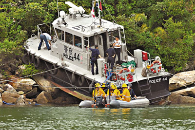 ■44號水警輪第四度肇禍,昨日疑因濃霧剷上西貢塔門孤島石灘,需消防員到場拯救。