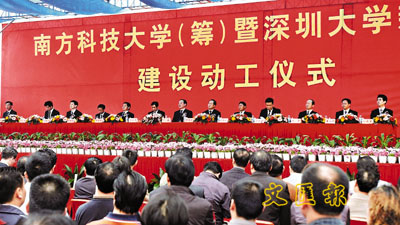 籌備數年、由深圳市政府全額投資創辦的南方科技大學於上周五舉行校園動工儀式。該校籌建辦公室主任梁北漢表示,深圳正加緊籌備、力爭在2010年獲得國家教育部批准,正式招生開學,預計首期可招收5,000名學生。這所以香港科技大學為建設模板的大學,除以理工商科課程為主外,跨學科也成為其「重頭戲」。梁北漢透露,今年5月哥本哈根大學等8所丹麥院校將赴深,洽談雙方合作開辦跨學科的辦學項目。