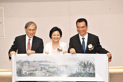 ■世界銀行副行長兼首席經濟學家林毅夫(右)與太太(中),左為中大校長劉遵義。本報記者張偉民 攝