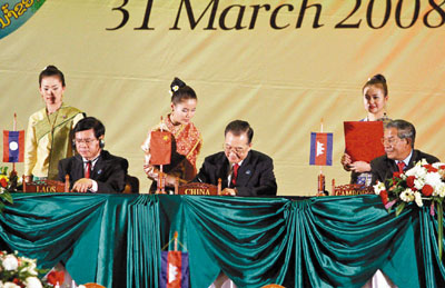 溫家寶總理昨日出席了GMS第三次領導人會議開幕式、閉門圓桌會及簽約儀式等活動。在由GMS六國總理和亞行行長出席的閉門圓桌會中,溫總發表講話。溫總說,GMS合作機制成立16年來,各國自主發展能力明顯提高,國與國之間關係更為緊密、融洽,構建次區域大家庭的理念日益深入人心,次區域正處於歷史上最好的發展時期。