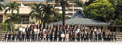 上午8時許,《文匯報》代表團與合作夥伴以及嘉賓代表首先聚集馬尼拉世紀酒店游泳池旁來個合照「全家福」,為研討會揭開序幕。參加這次會議的,除了海內外40多家華媒高層之外,還有不少特邀嘉賓,包括國務院新聞辦公室副局長李延風,中聯辦文宣部副部長周珊珊,以及多個省市新聞辦公室負責人和僑辦代表等,再加上多位中央媒體駐港的負責人,可謂陣容鼎盛。
