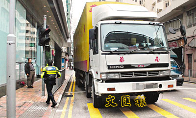 事發昨晨11時許,一名姓許(55歲)貨車司機,駕駛一輛30噸重型中港貨車,於內地運載一批貨物到干諾道西一個貨倉卸下後,準備返回上水停車場。