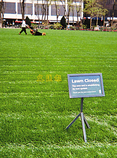 為迎接夏季來臨,工人習慣為布賴恩公園張羅「新衣」:一塊一塊新鮮小草皮。整個布賴恩公園共需5萬平方呎的草皮,每平方呎要1美元成本,這襲新衣可說所費不菲。