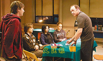 ■真人真事改編,《21》教授奇雲史柏錫(右1)訓練學生數牌。