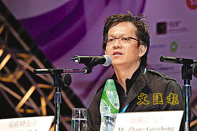 兩位來自海外的嘉賓新加坡海蝶董事總經理代表吳劍峰(見圖)及韓國MnetMedia首席行政官Antonio Park也在會上發言。吳劍峰指,現今的唱片「香港包裝、台灣製作、內地銷售」,是華語歌手認為最好的配搭。而韓國MnetMedia首席行政官Antonio Park指旗下曾合作的藝人有李孝利,韓國的「經理人」公司非單去管理藝人,公司很多時也參與不同的製作。
