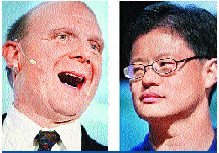 ■微軟行政總裁鮑爾默(左)及雅虎創辦人之一楊致遠。資料圖片