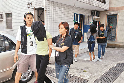 海關較早前接獲線報,指盜版集團利用打鼓嶺大埔田村一間村屋作燒錄工場。昨午12時,特遣隊人員衝入村屋拘捕兩名受聘「燒碟」內地女子,起出20台複製機、110部光碟燒錄器及1萬隻盜版光碟,並派人搜查該集團位於油麻地上海街一個用作倉庫的住宅,拘捕4名送貨的內地男子,起出5千隻盜版光碟。被捕4男2女(年齡由19至36歲)均持旅遊證件來港,日薪約300元。
