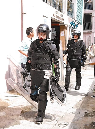 ■警方出動「鐵甲威龍」制服挾妻6小時的傻漢。
