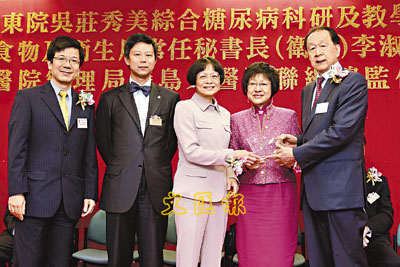 【本報訊】東華三院於日前在東華東院舉行「吳莊秀美綜合糖尿病科研及教學中心」命名典禮,邀得食物及衛生局常任秘書長(衛生)李淑儀及醫院管理局港島東醫院聯網總監任燕珍醫生蒞臨主禮。
