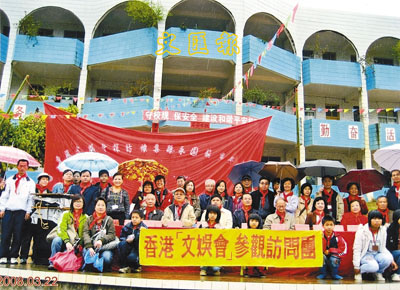 文娛會探訪團得到懷集縣教育局植秀成書記,孔祥榮老師、永固鎮領導和該校校長、師生熱情接待。該會榮譽會長游錦泉、張潔澦,副主席余美嫻、關天任,司庫梁銳華,統籌姜少珍和顧問林國昭、葉國安、龔麗珍鼎力支持,各團友攜手合作捐資,活動圓滿成功。訪問期間成員還暢遊德慶盤龍峽,新興金水台溫泉,中山及番禺等地名勝。文娛會自2001年起開展內地助學計劃,迄今為粵北、粵西、江西、湖南、廣西捐贈多所學校,今年5月計劃為貴州興建一座「香港文娛會水撈小學」,正呼籲友好鼎力支持。