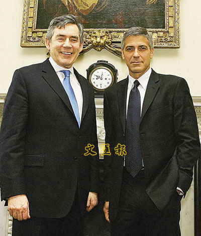 前日現身倫敦替新片《Leatherheads》大做宣傳的佐治古尼(右),突然撇下拍檔雲妮絲維嘉不顧,現身唐寧街10號和英國首相白高敦(左)難得地會面,談及包括這位男星最關注的達爾富爾地區人道問題。由於多年來對當地的努力有目共睹,白高敦也不忘讚賞佐治很符合其聯合國大使身份,讓世界看清動盪戰區的問題所在,繼而令世人齊伸援手盡力協助。■文:愚者/圖:美聯社