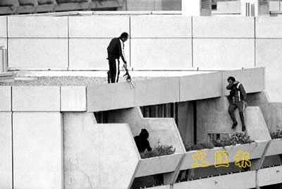 ■1972年慕尼黑奧運會恐怖襲擊。圖為偽裝成運動員的德國警員在奧運村樓頂戒備。 資料圖片