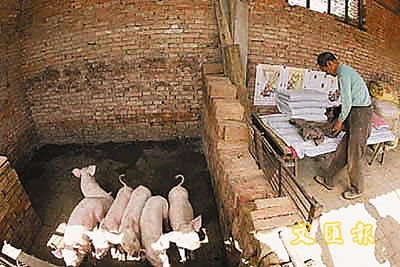 ■西安市藍田縣洩湖鎮崔家坪村民為防偷盜飼養生豬,夜間與豬同伴。網上圖片