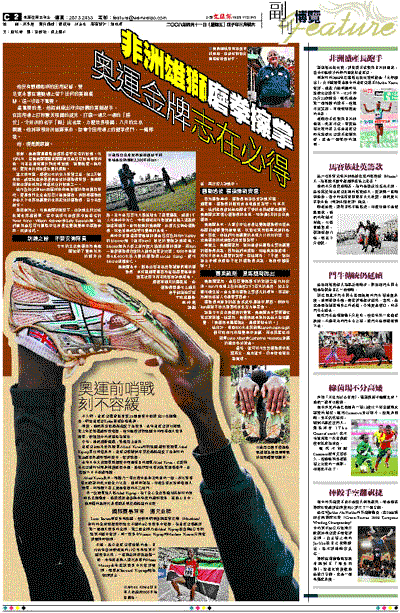 最重要的是,他能訓練出所向披靡的賽跑選手,在田徑場上打敗歐美強國的健兒,打贏一場又一場的「勝仗」,令非洲的名字「跑」出名堂,力壓世界強國;八月的北京奧運,他將率領非洲雄獅東來,勢會令田徑場上的龍爭虎鬥,一觸即發。