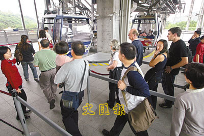 ■昂坪纜車昨復駛,吸引4500人次乘搭。本報記者潘政祁 攝