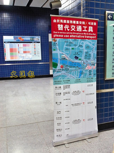 ■港鐵在馬鞍山站內豎立指引牌,建議乘客轉乘小巴或巴士前往目的地。