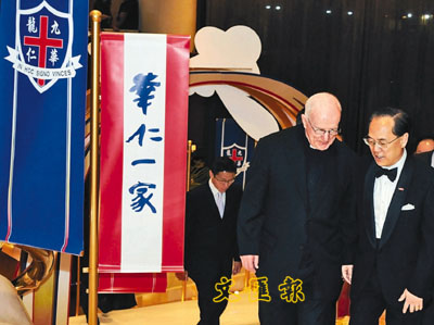 特首曾蔭權以舊生身份,昨帶同太太出席香港華仁書院舊生會及九龍華仁書院舊生會聯合主辦的「華仁一家餐舞會」。 ■本報記者高仲明 攝