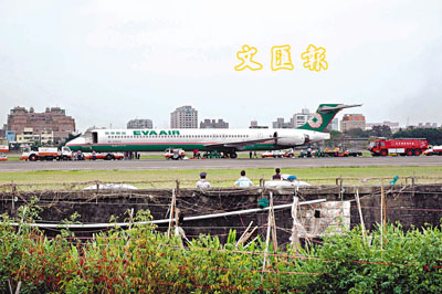 ■長榮航空編號B-17913接駁機15日由桃園飛往高雄,因機翼輪胎爆胎,迫降高雄國際機場。 中央社