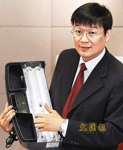 ■許樹源表示,消委會測試市面出售的10款魚缸燈,其中3款有問題,需要回收或停售。本報記者劉國權 攝