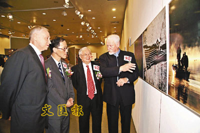 「彩色繽紛的克羅地亞」攝影展於中央圖書館舉行,圖為著名攝影家Ivo Pervan(右一)向民政事務局局長曾德成、克羅地亞駐華大使韋利奇博士及克羅地亞駐港名譽領事胡應湘爵士(右二)介紹展出作品。