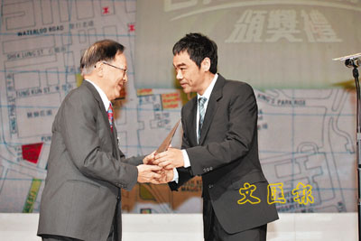 ■劉青雲頒獎給舞台劇「最佳男主角」鍾景輝,敬畏地表示自己其實「不夠資格」。