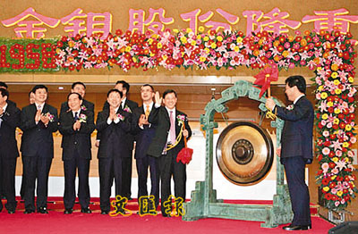 ■陝西省副省長吳登昌(左)與金鉬股份董事長馬寶平為開市鳴鑼。 圖片來源:中國證券網