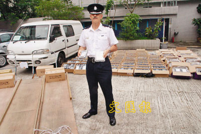 至凌晨近2時,果然發現兩艘快艇在布袋澳碼頭靠岸,同時兩部載滿貨物客貨車駛抵,多名男子將大批用防水膠袋包裝的電腦硬件卸下碼頭搬上快艇。
