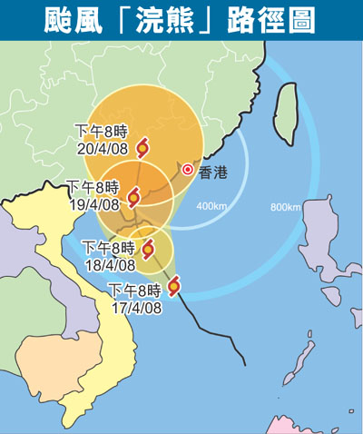 天文台昨日下午4時許發出今年首個一號戒備信號,是本港戰後第二個最早發出的熱帶氣旋警告,對上一次是1967年4月9日襲港的颱風維奧莉,天文台估計是拉尼娜現象影響所致。香港天文台高級科學主任陳積祥表示,颱風「浣熊」已進入本港800公里的範圍,正向西北偏北移動,今晚會相當接近海南島。