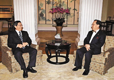 ■曾蔭權昨日下午在禮賓府會見訪港的廣西壯族自治區黨委書記郭聲琨,雙方就加強兩地經貿合作交換意見。