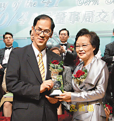 ■羅嘉穗主席(右)致送紀念品予曾德成局長。
