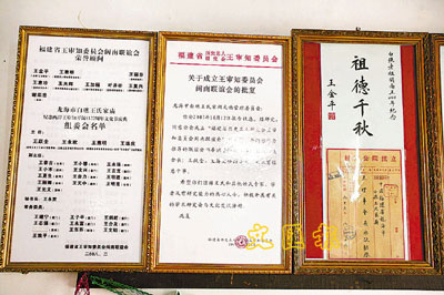 ■王金平的親筆題字被大陸宗親精心保存並懸掛在祖廟內。