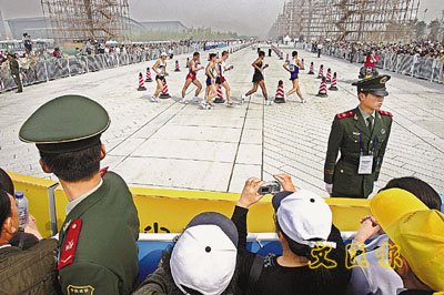另據了解,通過一天的比賽,鳥巢賽道的路面也遇上了新問題,許多選手反映,路面太硬,腳後跟疼,對體力有些影響。