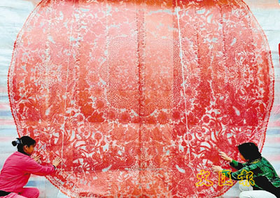 4月18日,在河南洛陽市國家牡丹園,一幅以牡丹為題材的巨型剪紙令觀眾嘆為觀止。該巨型剪紙中最大一朵牡丹花直徑1.5米,四周簇擁大小不同的牡丹花近百朵,花叢中有10條形態各異的龍。巨型剪紙由當地年過六旬的剪紙藝人李金柱老人創作。 新華社