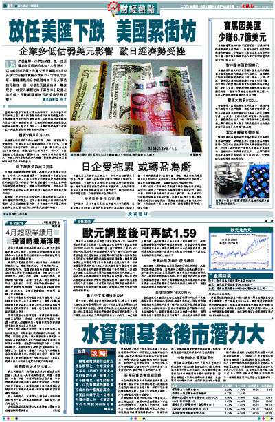 當歐元不斷創下面世以來的最高水平,以及日圓升破百元大關之際,歐日股市便只能條件反射般應聲大跌。日本和歐洲的出口商們都明白到,它們的盈利正被貶值的美元一點一滴地剝削掉。美國財政部雖然反覆強調其強勢美元政策,但至目前為止,美國政府還是講一套做一套,絲毫未見任何捍衛美元的舉動。