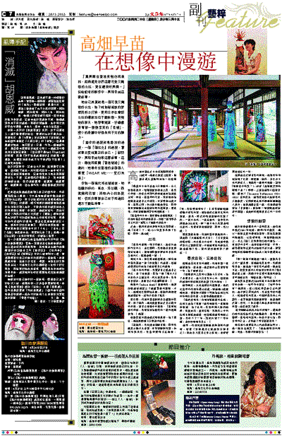 這批作品曾經於2006年在日本京都的四百年古剎—法然寺中展出。「法然寺中有一個房間,在12世紀時曾是公主的房間,是不對公眾開放的。我去見寺院的僧人,給他看我的作品,向他解釋我內心的變化,希望他讓我在這裡展覽。最後他終於說:好吧。」扮出僧人無奈表情的高(火+田)早苗,頑皮地笑了起來。