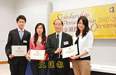 浸大日前舉行獎學金頒授典禮,頒授460項、合共約1,180萬元的獎學金予傑出學生,金額較去年增加340萬元。除獎學金外,該校本年度獲約30個機構或人士捐贈助學金或貸款,總額約280多萬元,獲資助的學生約有300人。圖為本報編輯部顧問張晴雲頒發獎學金予得獎同學。