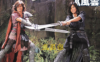 【本報訊】(記者 李慶全)斥資一億的大製作電影《風雲II》,昨日於曼谷最大片廠Partret舉行開鏡拜神儀式,香港、泰國及星馬近百傳媒也前往採訪,老闆林小明、導演彭順及彭發,主角郭富城與鄭伊健亮相會見傳媒,城城「步驚雲」與伊健「聶風」更以造型即場拍一場武打戲,可是伊健不慎以劍擊傷城城的頭,城城頭上即腫起一個如乒乓球般大的「瘤」,但他仍負傷說笑道:「就當是用來迎接北京奧運會啦!」