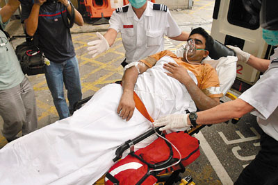 ¡@¶ËªÌ¤À§O¬OÆp«õ¾÷¨ÑÀ³°Óªº¼w°êÄy§Þ³NûMaik(36·³)¡A±¡B»ó¤Î¤UÅé³QÀ»¤¤¨ü¶Ë¡A³±Ån¶Ë¤fªø¬ù4¦T¡A °e°|«æ±Ï¬I¤âÁ_°w«á¡A±¡ªp¤´µMÄY«¡F¥t¤@¶ËªÌ¬°«n¨È¸Ç¦a½L¤u¤HHussain(38·³)¡A¥k¤âü³¤Î¤UÅé¨ü¶Ë¡A±¡ªpéw¡C