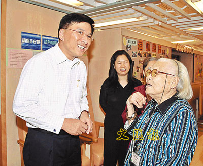 ■陳家強在屯門區綜合康齡服務中心向長者問好。
