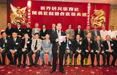 【本報訊】新界居民服務社主席陳強籌劃的「新界居民服務社——陳強社區協會」,日前在元朗西菁街20號益輝大廈的新會址,舉行慶祝成立酒會及啟用典禮;當晚假座元朗喜尚嘉賓宴會廳,舉行首屆職員就職典禮及支票捐贈儀式,眾多社團領袖、社會名人出席典禮。