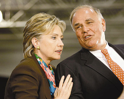 ■希拉莉獲賓州州長倫德爾支持。 法新社