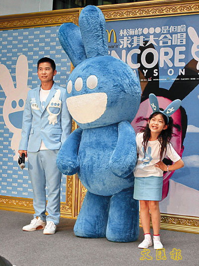 【本報訊】(記者 李思穎)林海峰「是但U求其大合唱partⅡ」將於5月28至31日於紅館舉行,昨日招待會上,林海峰特地介紹新構思的吉祥物「林兔」並在小朋友陪同下出場,林海峰提出四項可能加入的表演項目,包括「不邀請神秘嘉賓,邀請不神秘嘉賓」、「爭取在陳慧琳演唱會之後加開一場partⅢ」、「買廉價航空機票去紐約學跳舞,去維也納學唱歌」、「一人一支火炬,全場人傳人」。
