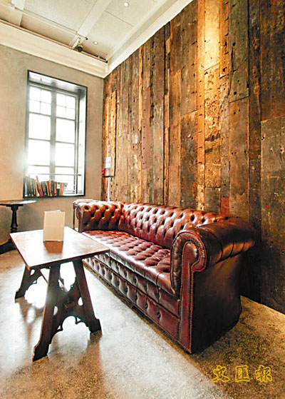■真皮沙發配上舊木條牆壁,散發濃濃的古舊風。
