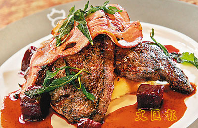 小牛肝配上煙肉薯蓉,味道極香濃,配合清新的甜菜根(beetroot)做醬汁作平衡。($175)